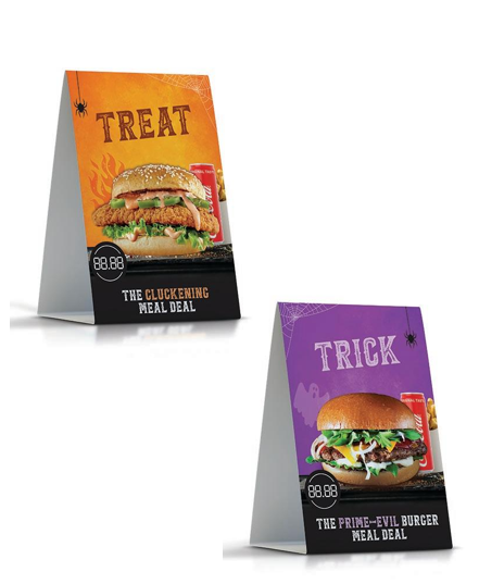 Halloween Trick or Treat meal deal A5 tent card. Order Now