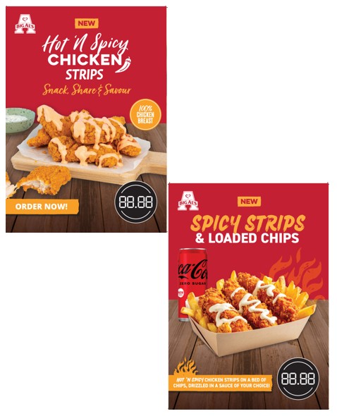 Make most of the Rethinkin Chicken campaign this year and activate the campaign with 2 attention grabbing point of sale pieces. This print pack includes: - 1 Fancy Something Extra Chicken Goujons Poster (A2 or A4) - 1 Fancy Something Extra Chicken Goujons A5 Tent Card Elevate any dish with Big Al’s Breaded & Battered Chicken Goujons, the perfect side to complement any beef or chicken entrée. What are you waiting for order now! Order Now